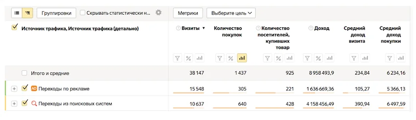 - 640 покупок было совершено на сайте после переходов из Яндекс и Google