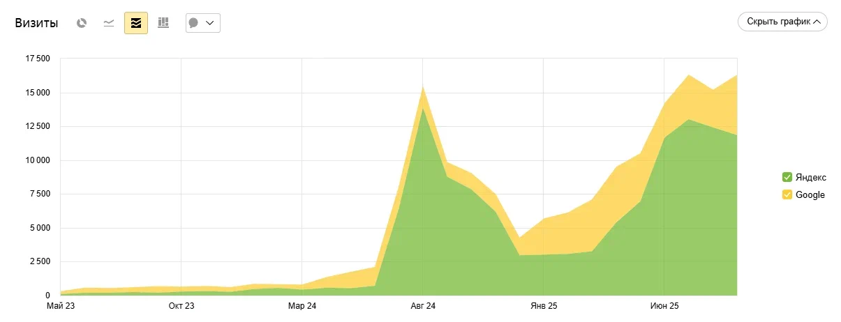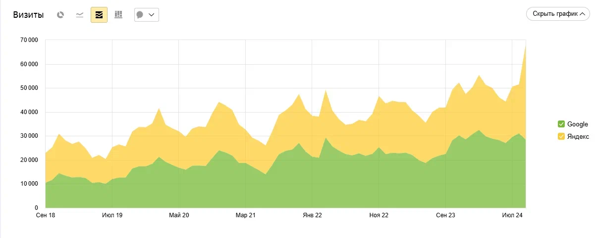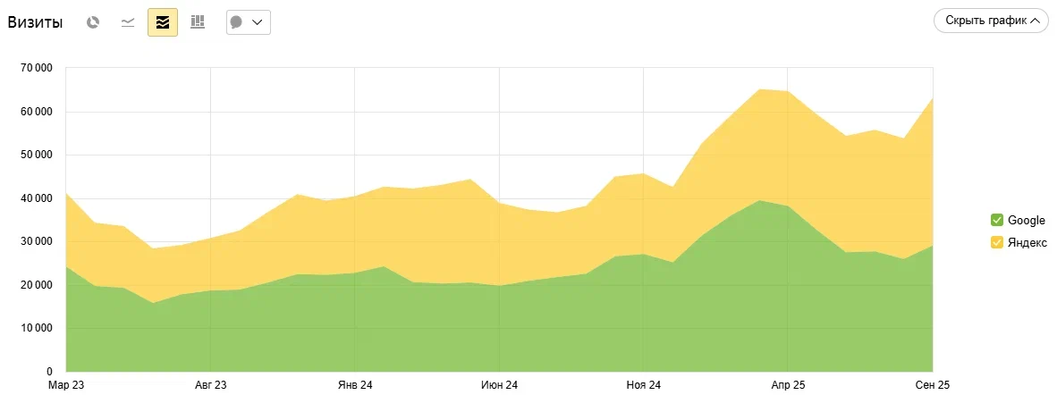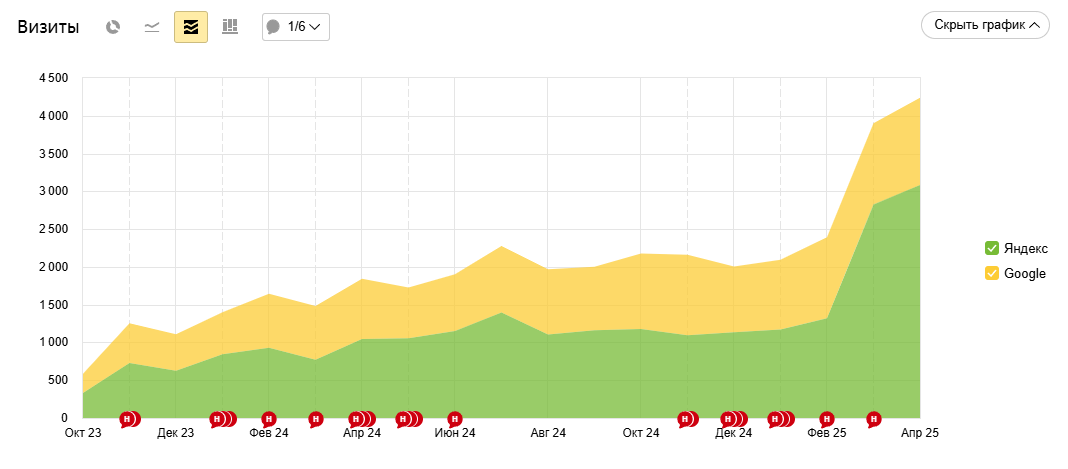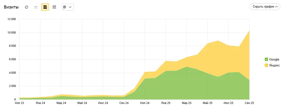 ТОП 1-10Рост трафика минимум в 2 раза