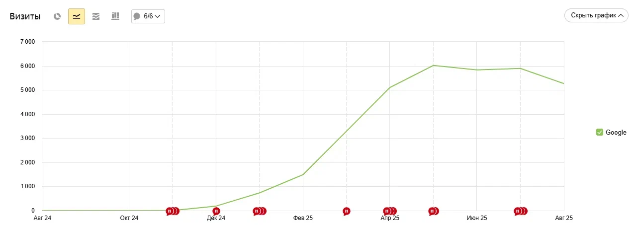 Рекомендуем настраивать системы аналитики, отслеживать динамику по заявкам. Необходимо посчитать, сколько лидов дает ресурс на старте работ и сколько через 3, 6 месяцев. Зная средний показатель конверсии и прогноз по трафику, можно просчитать возможную прибыль.