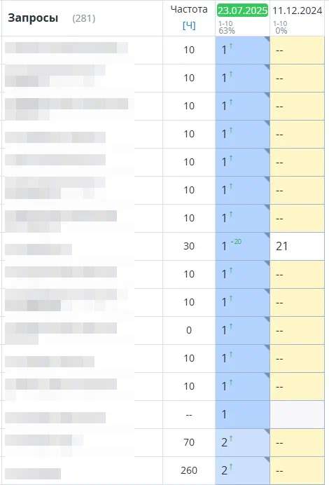 Результаты наших работ по продвижению