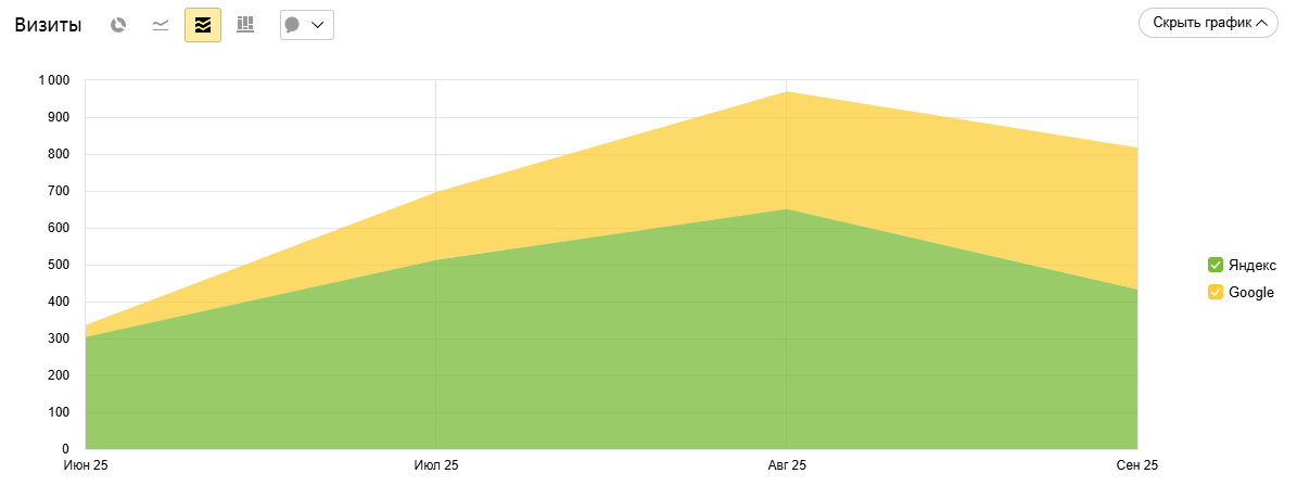 - Количество страниц в индексе (Яндекс, Google)