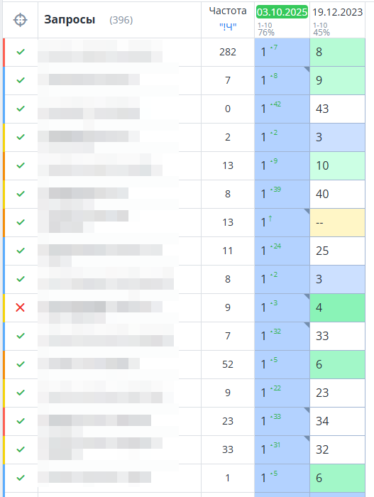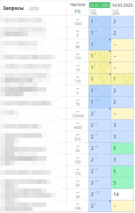 - Динамика позиций