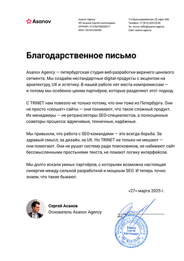 • Социальное доказательство + SEO = синергия: как отзывы, кейсы, медийность и “приземление” доверия усиливают видимость и конверсию.