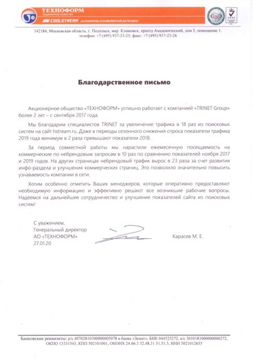 B2B (индустриальные теплоносители): рост трафика в 18 раз за 2 года;