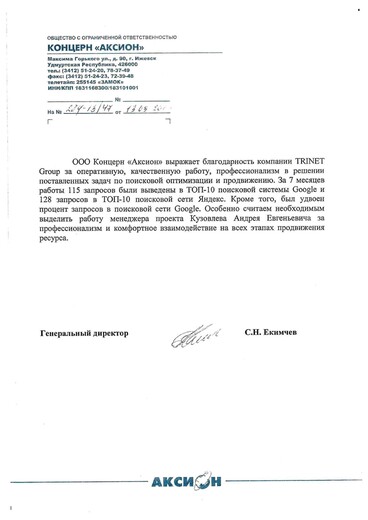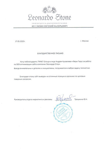 Благодарности от клиентов