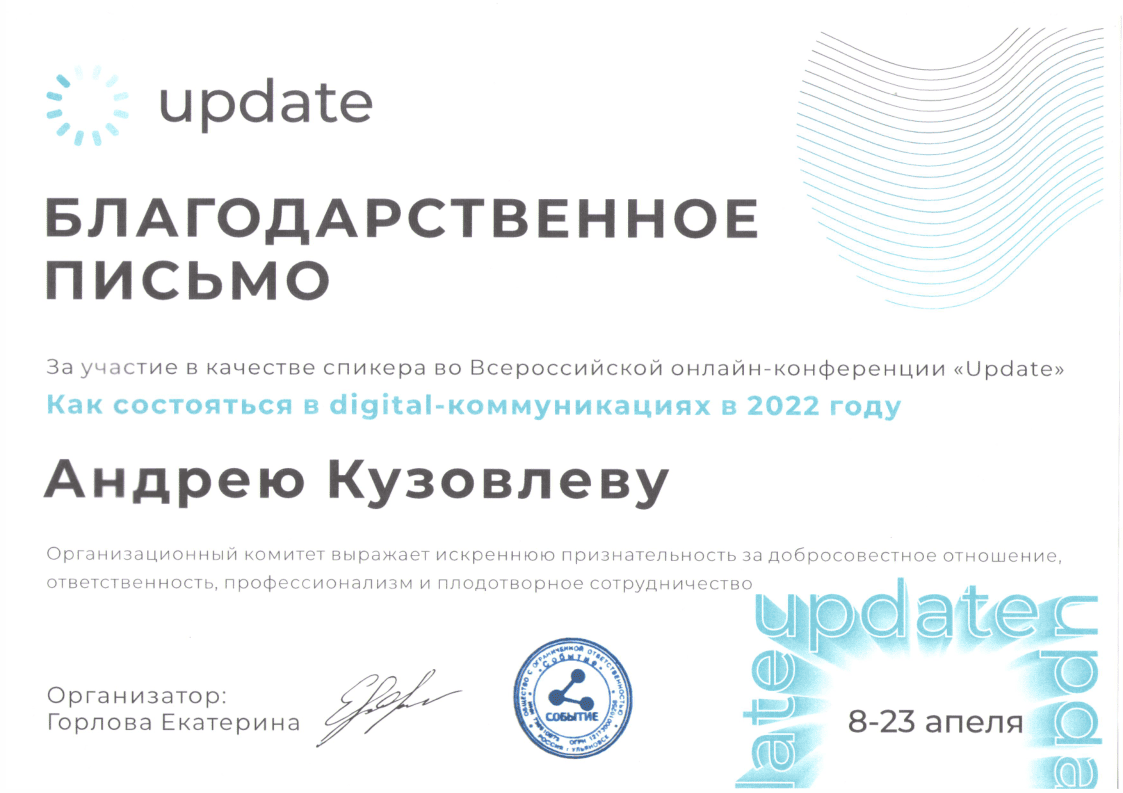 Напишите нам и Андрей подготовит уникальный доклад